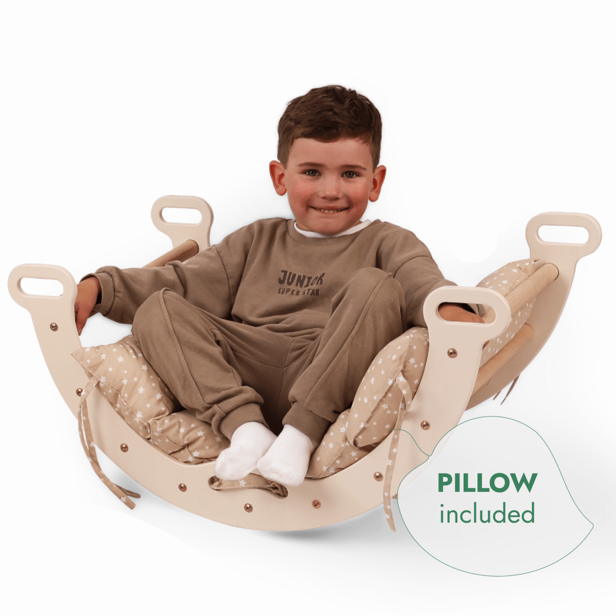 A multi-functional toy that functions as both a climbing arch and a rocker, encouraging diverse play scenarios and stimulating imagination.