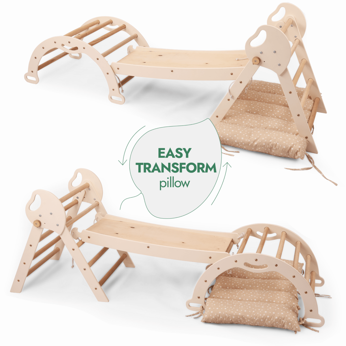 4in1 Montessori Climbing Set: Pikler Triangle, Arch, Slide Board, and Cushion for Toddlers (1–3 Years)