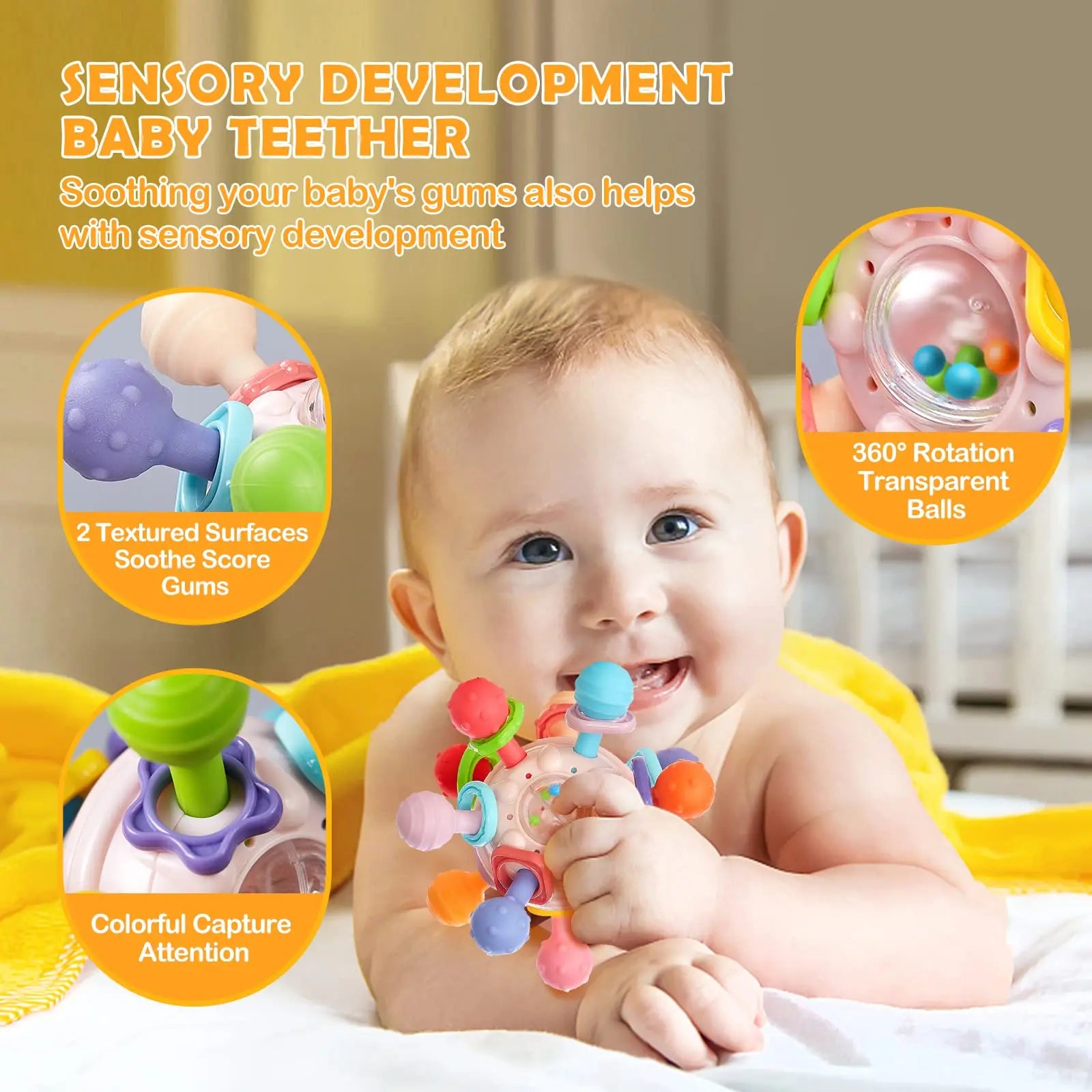 Sensory Teething Ball & Rattle – Baby Grasping Toy for 0–12 Months